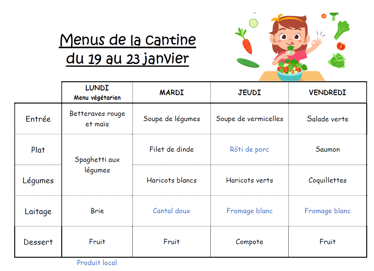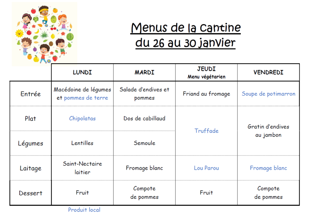 Les menus sont susceptibles d’évoluer en fonction des livraisons de nos fournisseurs.