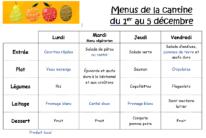 Menus du 01 au 05.12.2025