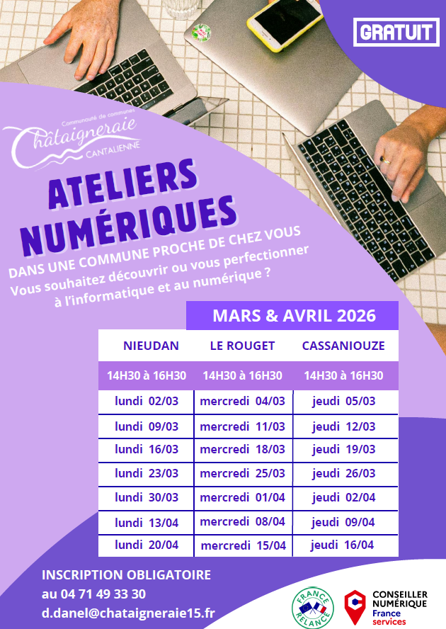 Participez gratuitement aux ateliers numériques, ouvert à tous, proposés par la Châtaigneraie Cantalienne.