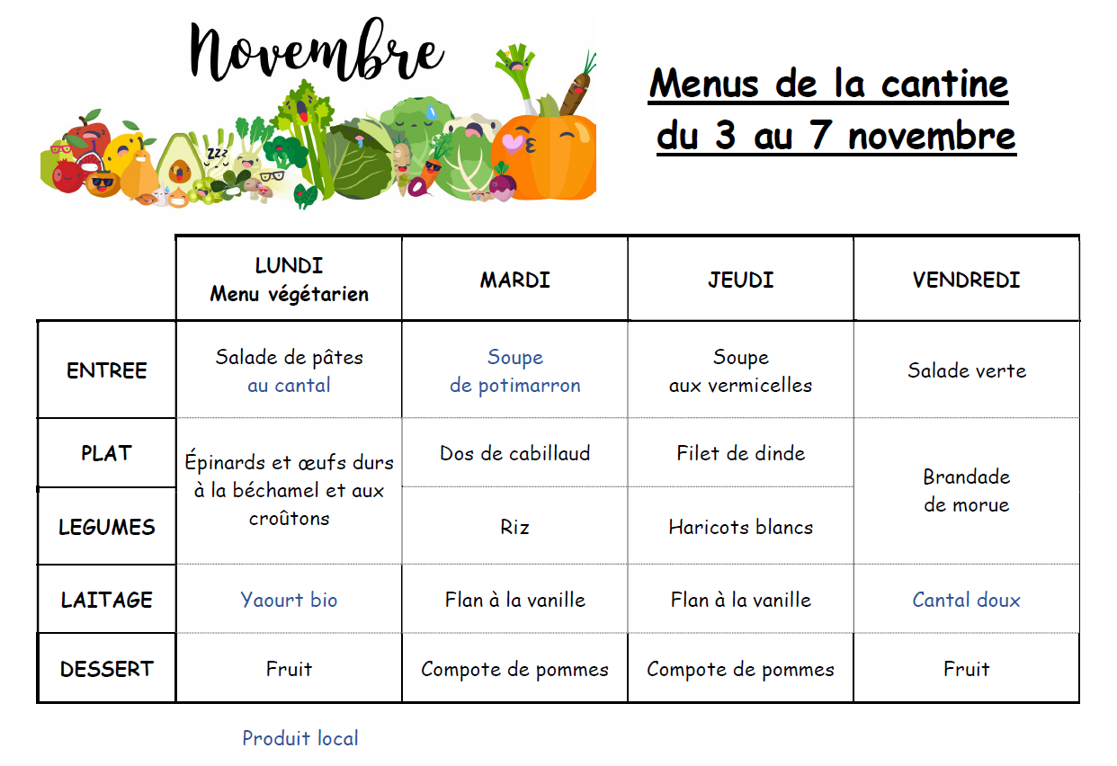 Menus du 03 au 07.11.2025
