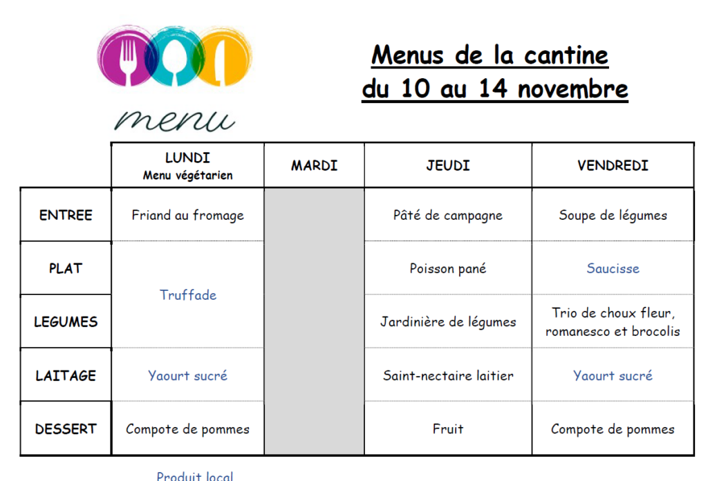 Menus du 10 au 14.11.2025