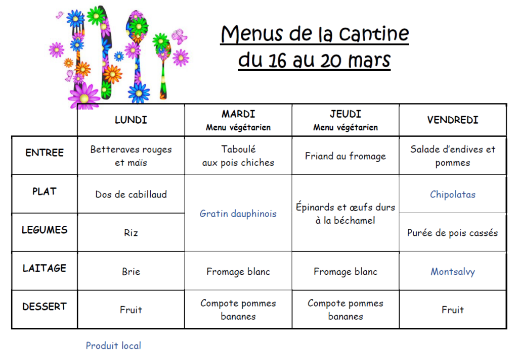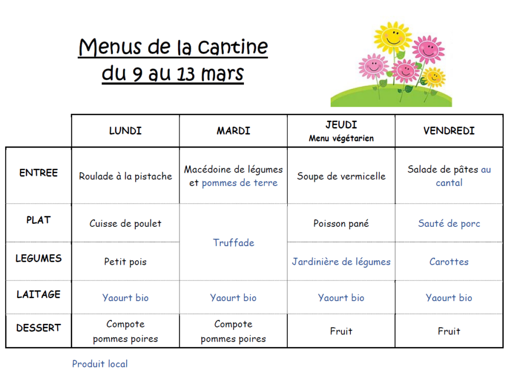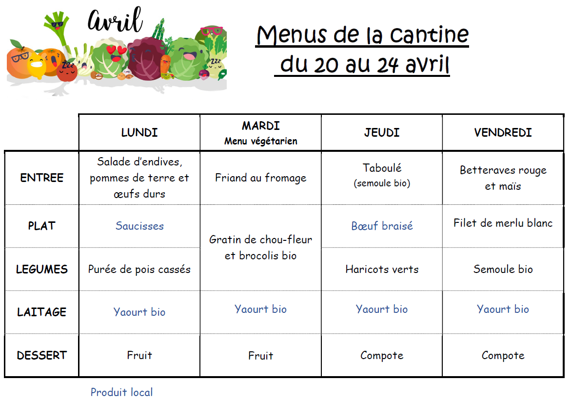 Les menus sont susceptibles d’évoluer en fonction des livraisons de nos fournisseurs.